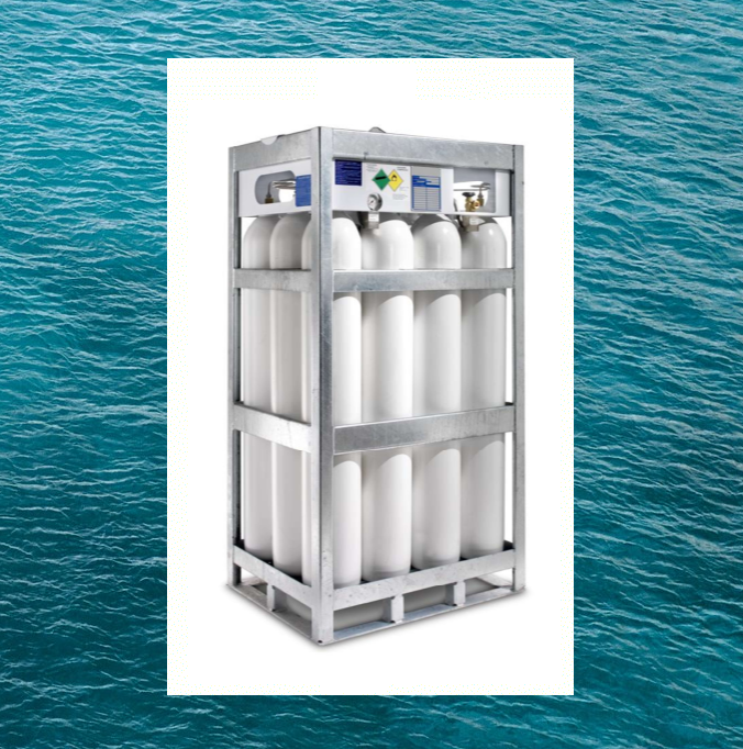 Álló gázpalack köteg tengeri használatra. Speciális rögzítőfülek, tengerálló felületkezelés, tengeri és kikötői használatra szóló engedélyek. 4, 8, 9, 12, 16, 20, 24, 30 palackos kivitelben, akár 200 bar akár 300 bar üzemi nyomással. Robot hegesztett tűzi horganyzott acél szerkezet. Egyedi konstrukcióért és mennyiségi kedvezményért hívjon bennünket